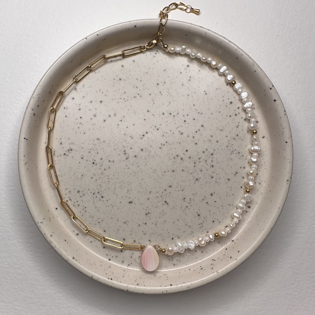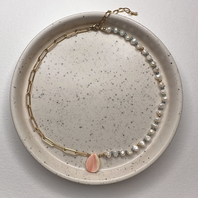 Pendentif unique en conque de lambi, entièrement fait à la main dans mon atelier à Saint-François en Guadeloupe.