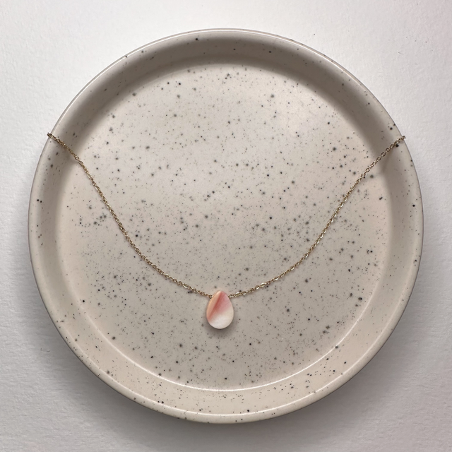 Pendentif unique en conque de lambi, entièrement fait à la main dans mon atelier à Saint-François en Guadeloupe.